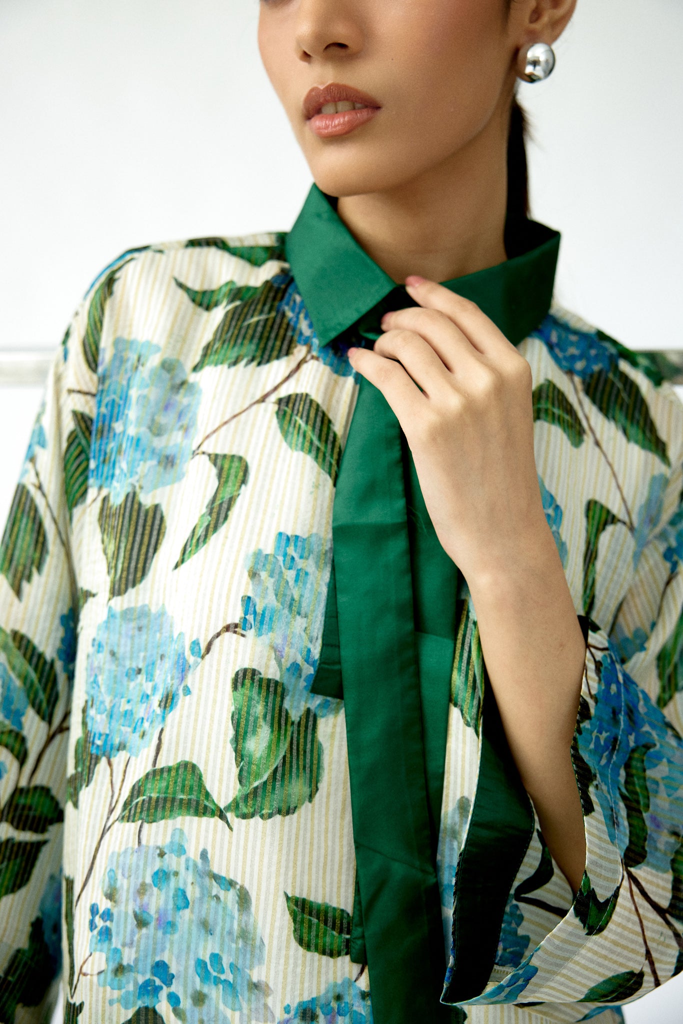 Tailored in premium lurex tissue and adorned with our exclusive hand-painted florals, these co-ords embody modern elegance with an artistic edge. Sophisticated yet versatile, they’re designed to transition seamlessly from refined daywear to statement evening looks.