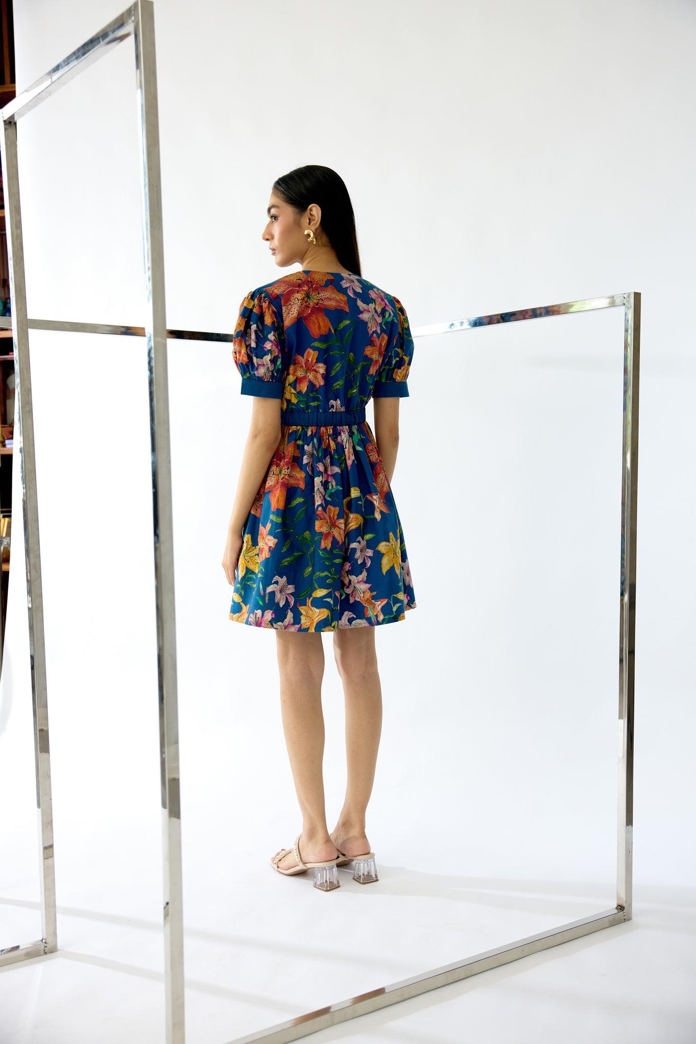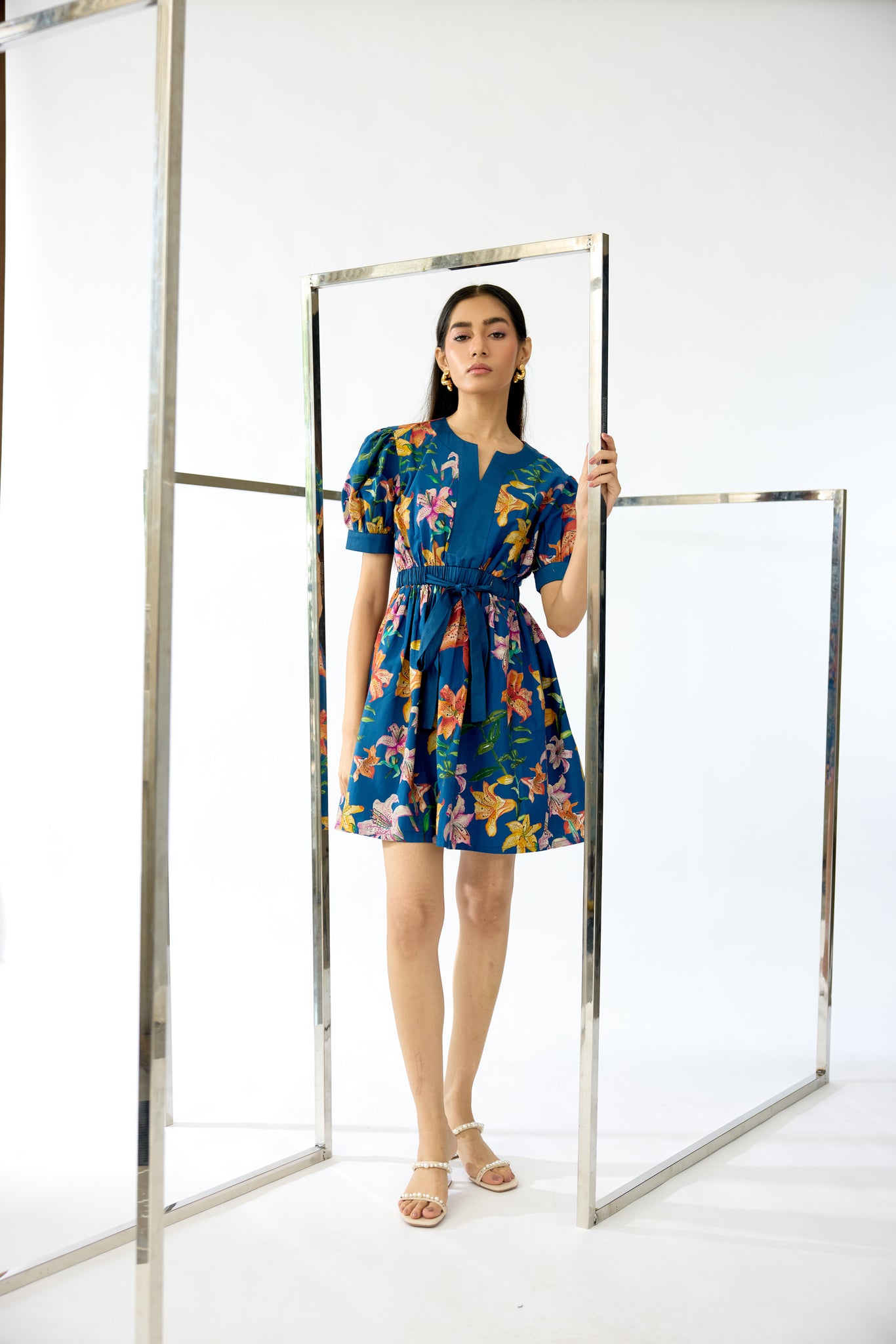 This mini dress captures playful elegance through premium poplin construction adorned with bespoke hand-painted florals. Expertly tailored with a youthful sensibility, it delivers a refined yet spirited aesthetic that commands attention while maintaining understated sophistication—an ideal choice for occasions demanding both charm and distinctive style.