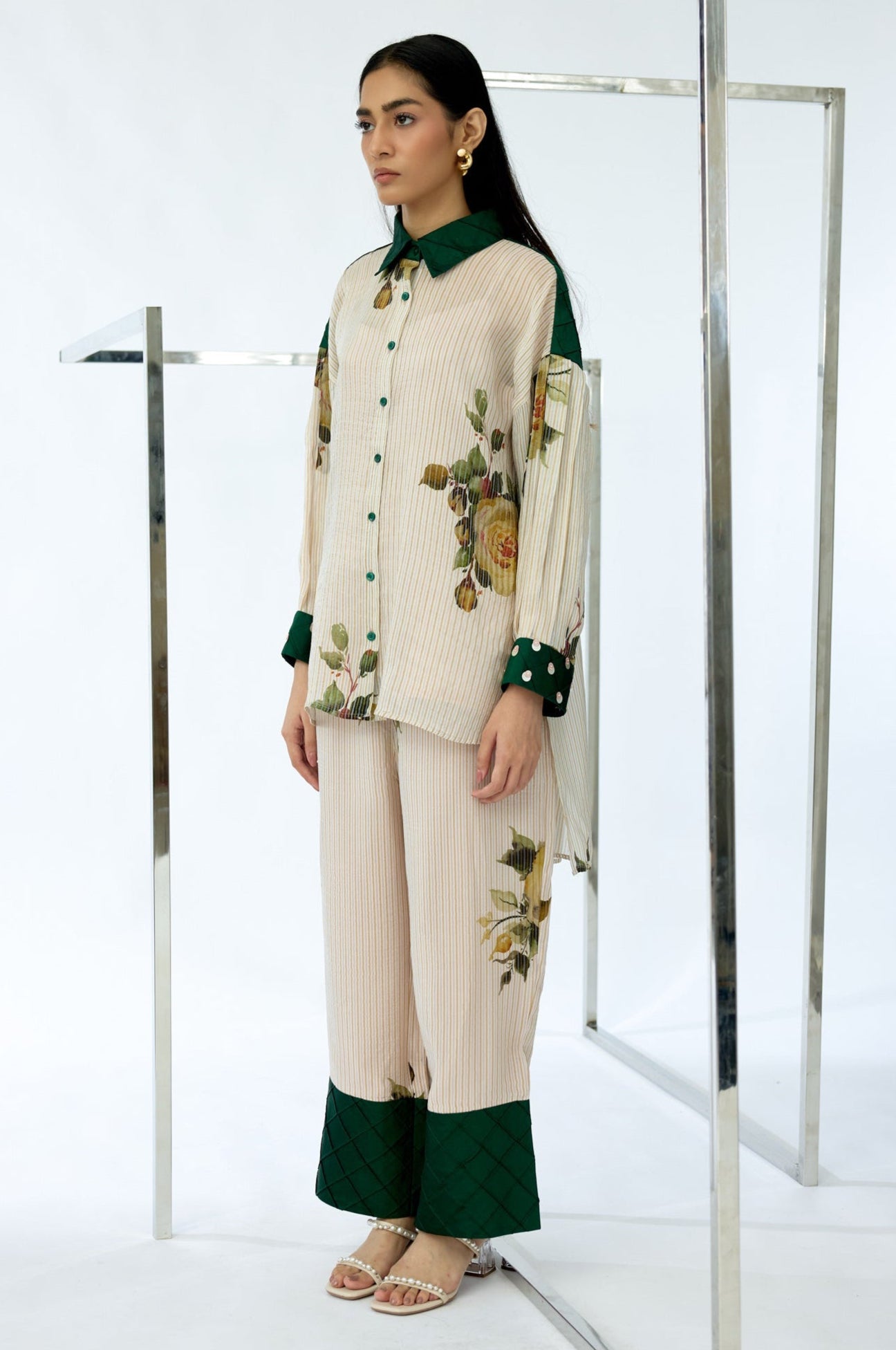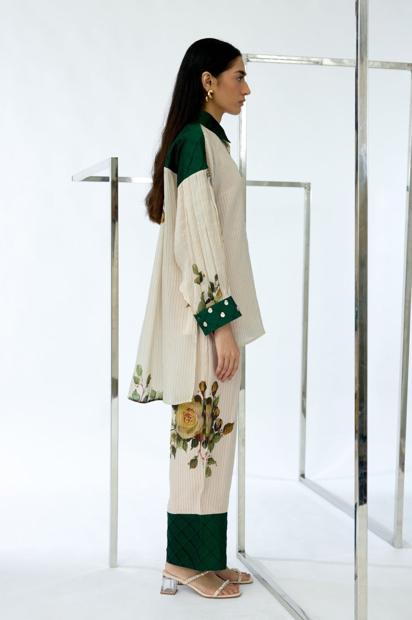 Tailored in premium lurex tissue and adorned with our exclusive hand-painted florals, these co-ords embody modern elegance with an artistic edge. Sophisticated yet versatile, they’re designed to transition seamlessly from refined daywear to statement evening looks.